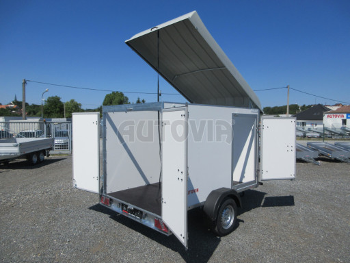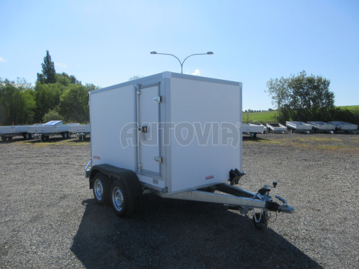 Jednoosý nebrzděný skříňový přívěs pro přepravu 3ks europalet. Robustní svařovaný rám. Skříň vyrobena z tlakově lepených desek o síle 15mm s polyuretanovou ochranou, střecha z hliníkových profilů. Záruka 24 měsíců, STK platné 6 let. Možnost odpočtu DPH 21% ihned při koupi přívěsu. Pro nepodnikatelské subjekty možnost splátkového prodeje.