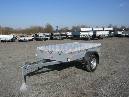 Jednonápravový nebrzděný nákladní přívěs s koly vně ložné plochy s bočnicemi z profilovaného alu-zinkového plechu o výšce 340mm. Pravá i levá bočnice včetně předního a zadního čela odnímatelné - možnost provedení plato. Třmeny na bočnicích - příprava pro krycí plachtu! Přívěs je osazen značkovou nápravou AL-KO/KNOTT SRN s vysokou nosností. Konstrukci tvoří kvalitní celosvařovaný zesílený rám s páteřní výztuhou po celé délce přívěsu.