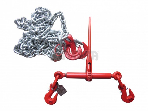 - Kotvící pozinkovaný řetěz s průměrem řetězu 10mm a pevností 63kN(6,3t) třída G8 pro uchycení mechanizace a jiných těžkých nákladů