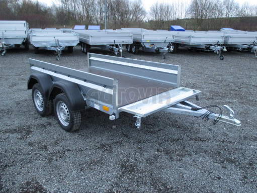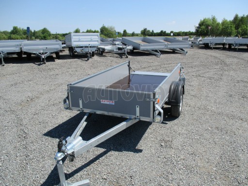 Jednoosý nebrzděný nákladní přívěs s koly vně ložné plochy. Samonosnou konstrukci tvoří profilované bočnice z pozinkovaného plechu výšky 350mm, hliníkové sloupky a podlaha z 15mm silného voděodolného dřevovláknitého materiálu.. Přívěs je vybaven nápravou od německé firmy KNOTT a „V“ ojí. Odpružení nápravy je provedeno speciálními pryžovými elementy s vysokým vlastním útlumem. V základní výbavě je zadní výklopné a odnímatelné čelo. Spojení pro kouli ISO 50. Možnost provedení 130km/h