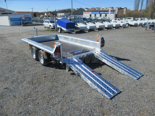 Skladový dvounápravový brzděný nákladní přívěs s koly vedle ložné plochy, výborné jízdní vlastnosti - stabilita přívěsu. Přívěs je vhodný pro přepravu dřeva, komunální techniky. Možnost dokoupení nájezdů, plachty s konstrukcí aj. Záruka 18 měsíců, platnost STK 4 roky.