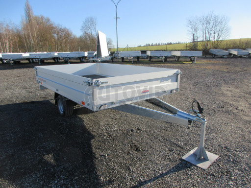 Nebrzděný dvounápravový nákladní přívěs s vysokou konstrukční nosností 1265kg a velmi nízkou ložnou plochou. Velikost ložné plochy odpovídá až 3 ks europalet