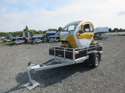 Jednoosý nebrzděný hydraulicky sklopný přívěs vhodný k převozu čtyřkolek, traktůrků, sekaček, sněžných skútrů a jiného. Protočením náprav dosedne zadní část ložné plochy na zem. Tím se vytváří velmi malý nájezdový úhel. Pomocí ruční hydrauliky se ložná plocha vrací do přepravní polohy. Velmi snadná obsluha.