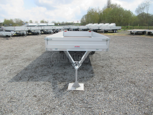 Jednonápravový nebrzděný přívěs s koly pod ložnou plochou a odnímatelnými bočnicemi, vhodný pro nakládání z bočních stran přívěsu, umožňuje převoz až 3 ks europalet. Pevnostní ocelový a zinkovaný rám s robustními ojemi po celé délce přívěsu, hliníkové eloxované bočnice o výšce 350mm, sklopné a plně odnímatelné - možnost provedení plato, značková nebrzděná německá náprava AL-KO/KNOTT SRN (750kg). Přívěs je vybaven 13" pneu s vysokým nájezdem kilometrů a výbornými jízdními vlastnostmi.