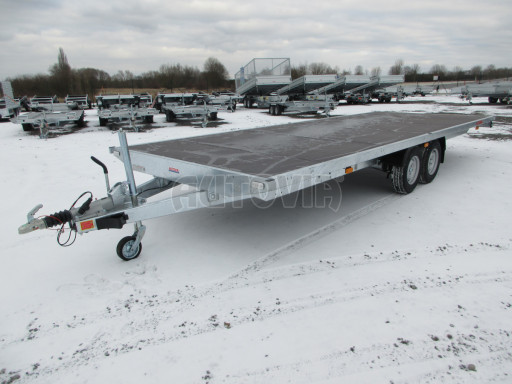 Dvounápravový brzděný valník s konstrukcí a plachtou na přepravu až 5 europalet, techniky a zboží s robustním celosvařovaným žárově zinkovaným rámem. Hliníkové eloxované bočnice o výšce 350mm, sklopné a plně odnímatelné - možnost provedení plato, zesílená jeklová konstrukce s celní lakovanou plachtou výšky 1,70m - možnost demontáže plachty včetně konstrukce. německé nápravy a nájezdová brzda AL-KO/KNOTT. Velmi vysoká nosnost - 2920kg. Možnost dokladového snížení celkové hmotnosti v TP! Plná záruka 24 měsíců, STK 4 roky.