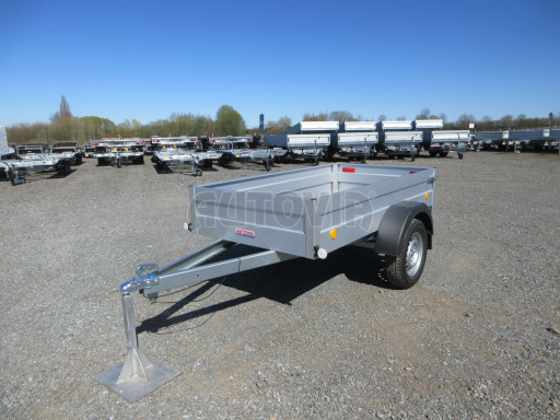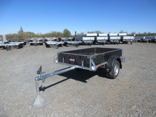 Sklopný nebrzděný přívěs s hliníkovými bočnicemi, masivní V oj,lehká provozní váha,možnost zapojení za čtyřkolky. Pro podnikatelské subjekty možnost splátkového prodeje s akontací od 10% tj. 1.599,- a splátkou 830,- bez DPH.